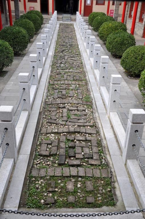 ? ? ? ?1927年9月陜西省委貫徹中共八七會議精神,確定在群眾基礎(chǔ)尚好的渭華地區(qū)開展武裝斗爭,1928年2月正式下達(dá)暴動決定。5月初,我黨控制的許權(quán)中旅開赴高塘鎮(zhèn)與中共陜東赤衛(wèi)隊(duì)會合,宣布成立西北工農(nóng)革命軍,劉志丹任軍委主席、唐澍任總司令、王泰吉任參謀長、許權(quán)中任顧問兼騎兵隊(duì)長,向西北反動派打響了第一槍,建立起方圓200平方公里的紅色蘇區(qū)。起義軍司令部進(jìn)駐高塘小學(xué),劉志丹看到磚鋪標(biāo)語心潮起伏,建議再增加“同志們趕快”5字,使其更具針對性和感召力,并帶領(lǐng)官兵重新鋪定,遂使總長達(dá)20米、幅寬2.1米,磚字砂底,青白更加明晰,用以喚起民眾鼓舞士氣。