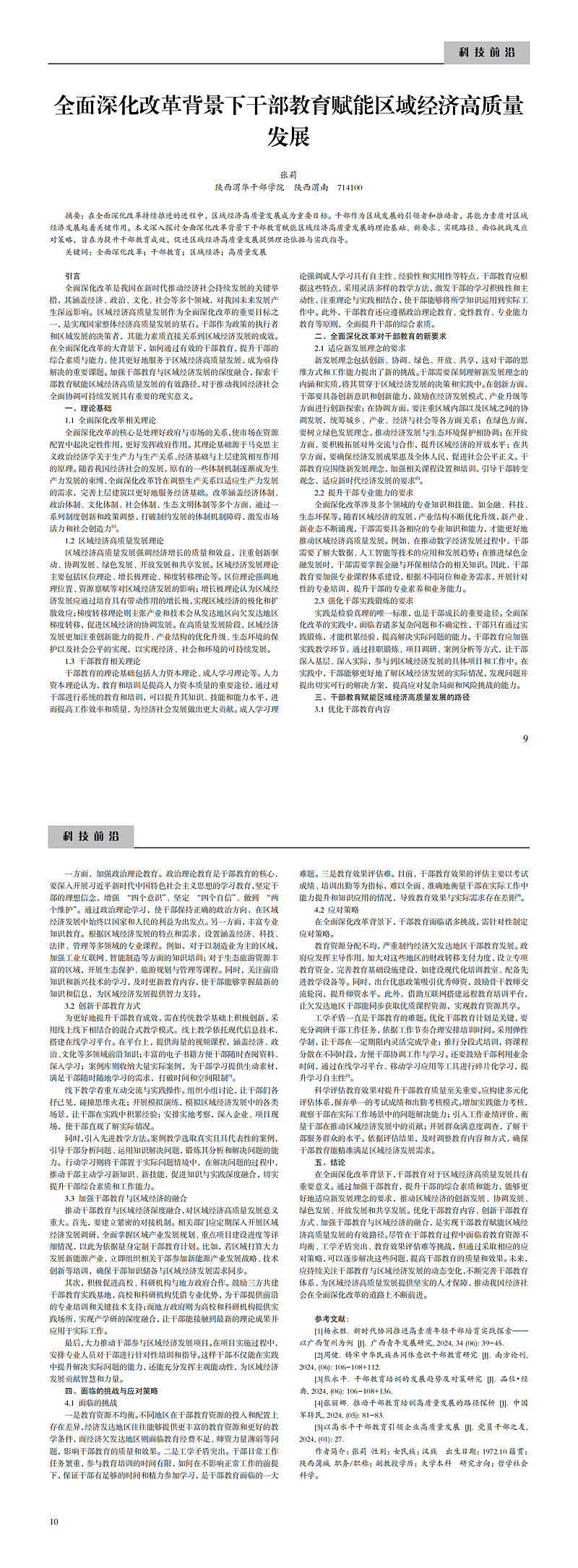 全面深化改革背景下干部教育賦能區(qū)域經(jīng)濟(jì)高質(zhì)量發(fā)展