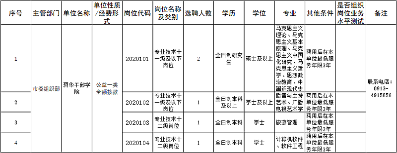 渭南市2020年市級黨群系統(tǒng)事業(yè)單位