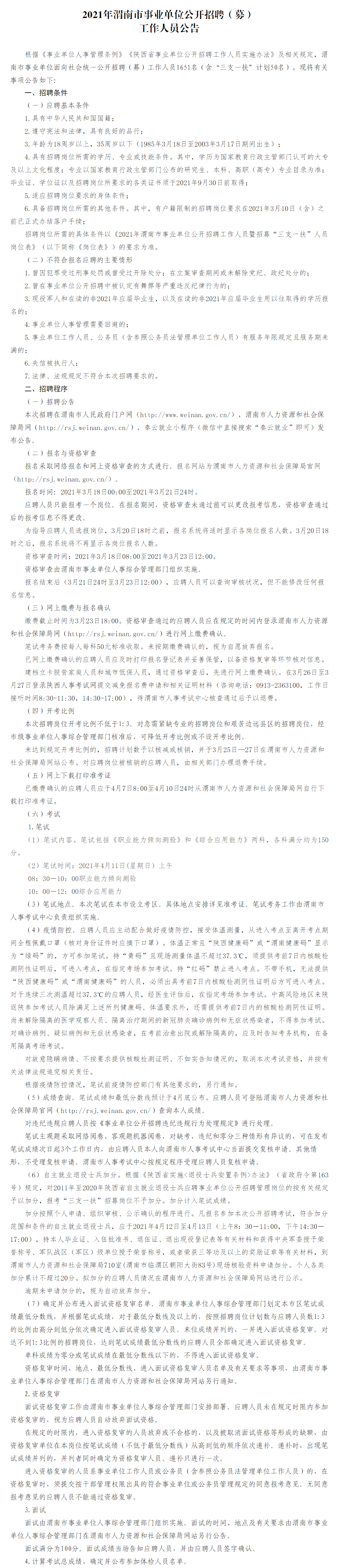 1.2021年渭南市事業(yè)單位公開招聘工作人員暨招募“三支一扶”人員崗位表