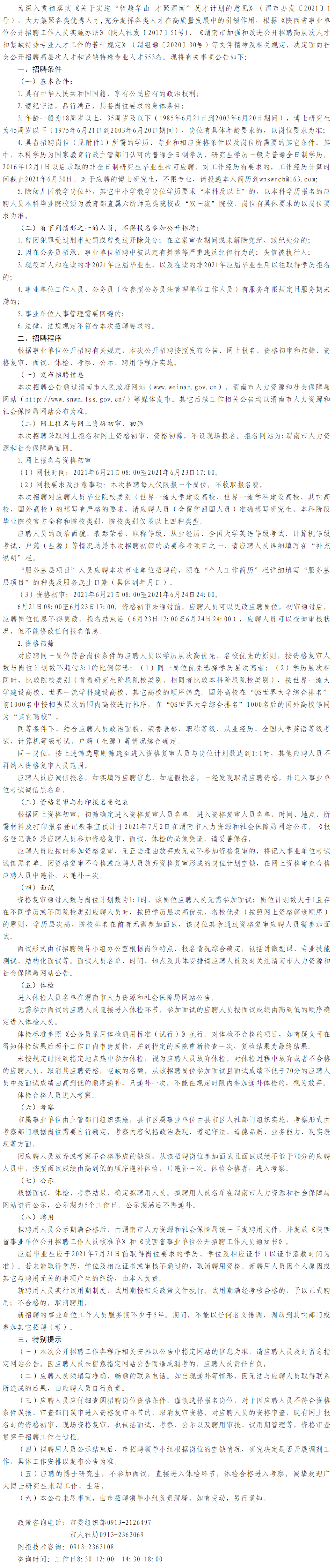 ? 附件:2021年渭南市公開招聘高層次人才和緊缺特殊專業(yè)人才崗位計(jì)劃表