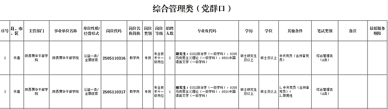 全市黨群口綜合管理類招聘計劃, 咨詢電話0913-2129105;