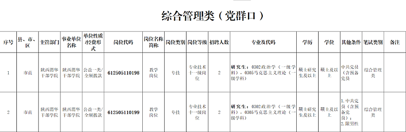 渭南市委組織部負(fù)責(zé)解釋全市黨群口綜合管理類招聘計劃。咨詢電話0913-2129105;