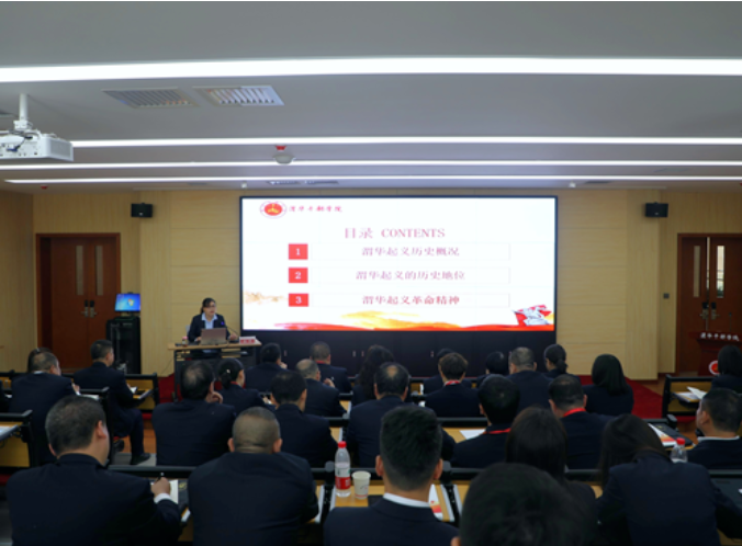 ? ? ? ?下午,全體黨員聆聽了渭華干部學院教師張莉講授的專題課《渭華起義的革命精神及歷史地位》,重點從渭華起義的歷史概況、歷史地位、革命精神三個方面對渭華起義進行了全面的學習。專題課結束之后,學員們圍繞“作為新時代黨務工作者,如何更好地踐行渭華起義革命精神”開展了研討交流,各支部黨員代表進行了發(fā)言。