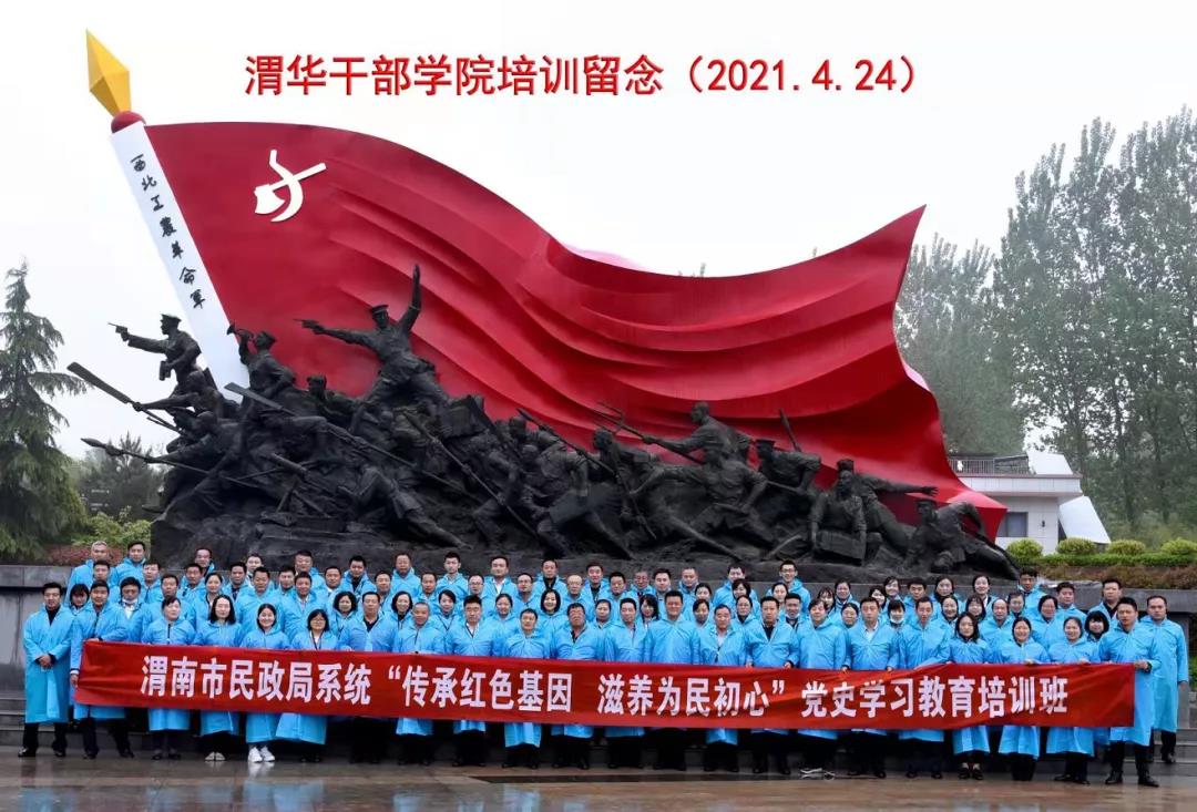? ? ? ?為深入學(xué)習(xí)貫徹習(xí)近平總書記在黨史學(xué)習(xí)教育動員大會上的重要講話,學(xué)黨史、悟思想、辦實(shí)事、開新局,2021年4月24日—4月25日,渭南市民政局系統(tǒng)“傳承紅色基因 滋養(yǎng)為民初心”黨史學(xué)習(xí)教育培訓(xùn)班在渭華干部學(xué)院成功舉辦,來自渭南市民政系統(tǒng)90余人參加了此次培訓(xùn)。