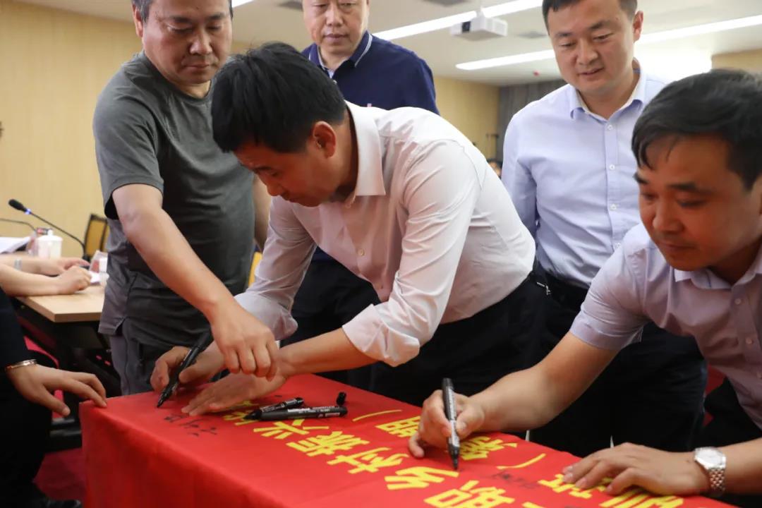 ? ? ? ?5月14日,培訓(xùn)班舉行結(jié)業(yè)式,渭華干部學(xué)院黨委副書(shū)記、常務(wù)副院長(zhǎng),華州區(qū)委常委、組織部長(zhǎng)馬寧,渭華干部學(xué)院副院長(zhǎng)王鋒為培訓(xùn)班班長(zhǎng)、副班長(zhǎng)和四名組長(zhǎng)頒發(fā)結(jié)業(yè)證書(shū),學(xué)員代表漢中市勉縣武侯鎮(zhèn)黨委書(shū)記王立,渭南市潼關(guān)縣秦東鎮(zhèn)黨委副書(shū)記、鎮(zhèn)長(zhǎng)董利濤交流了心得體會(huì),一致表示,通過(guò)此次培訓(xùn),對(duì)革命理想認(rèn)識(shí)更深,對(duì)黨的理論把握更準(zhǔn),責(zé)任擔(dān)當(dāng)意識(shí)更強(qiáng),要把干部學(xué)院良好的學(xué)風(fēng)和學(xué)到的好的工作方法帶回去,運(yùn)用實(shí)踐、推動(dòng)工作,為推動(dòng)陜西鄉(xiāng)村振興事業(yè)爭(zhēng)光添彩。之后所有學(xué)員在班旗上簽字留念。