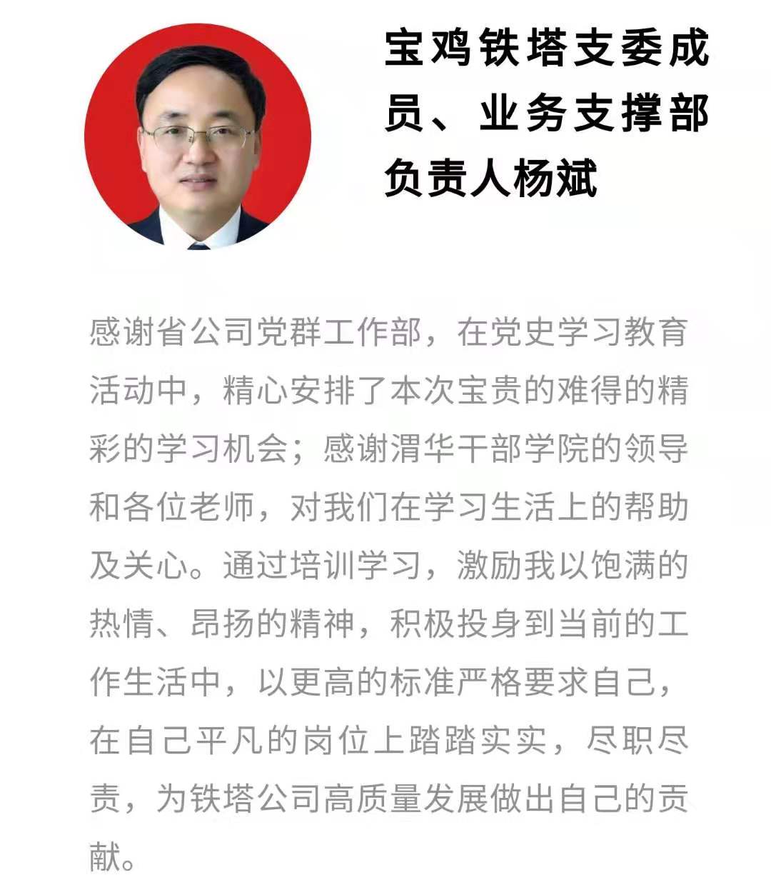 ? ? ? ?“盛夏挾驕陽,于以構炎熯?!绷碌那貛X,夏山如碧,一片綠意盎然。2021年6月15日——18日,為期四天的中國鐵塔股份有限公司陜西省分公司黨務干部黨史學習教育培訓班在渭華干部學院成功舉辦。