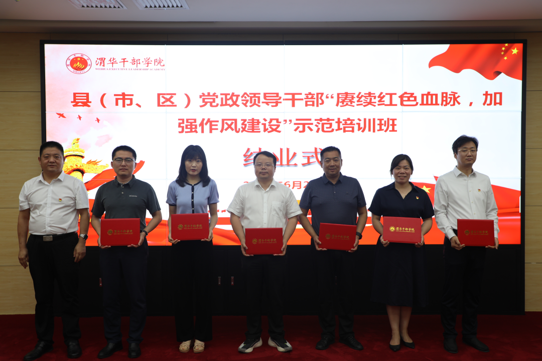 ? ? ? ? 6月24日,培訓(xùn)班舉行結(jié)業(yè)式。結(jié)業(yè)式上,學(xué)員代表延安市寶塔區(qū)副區(qū)長、馮莊鄉(xiāng)黨委書記南小明,榆林市橫山區(qū)人民政府副區(qū)長錢梅分別作了交流發(fā)言,渭華干部學(xué)院副院長王鋒為培訓(xùn)班學(xué)員頒發(fā)結(jié)業(yè)證書,全體學(xué)員依次在班旗上簽名留念。學(xué)員們紛紛表示:本次培訓(xùn)主題鮮明、安排緊湊、學(xué)風(fēng)嚴(yán)謹(jǐn)、收獲滿滿,是理論知識的“再充電”、作風(fēng)修養(yǎng)的“再錘煉”、干事創(chuàng)業(yè)的“再鼓勁”。今后,將以本次培訓(xùn)為契機,練好內(nèi)功、提升素養(yǎng),凝心聚力,推動本地區(qū)、本部門各項事業(yè)高質(zhì)量發(fā)展,為新時代陜西高質(zhì)量發(fā)展做出更大的貢獻(xiàn),以優(yōu)異成績迎接黨的二十大勝利召開!