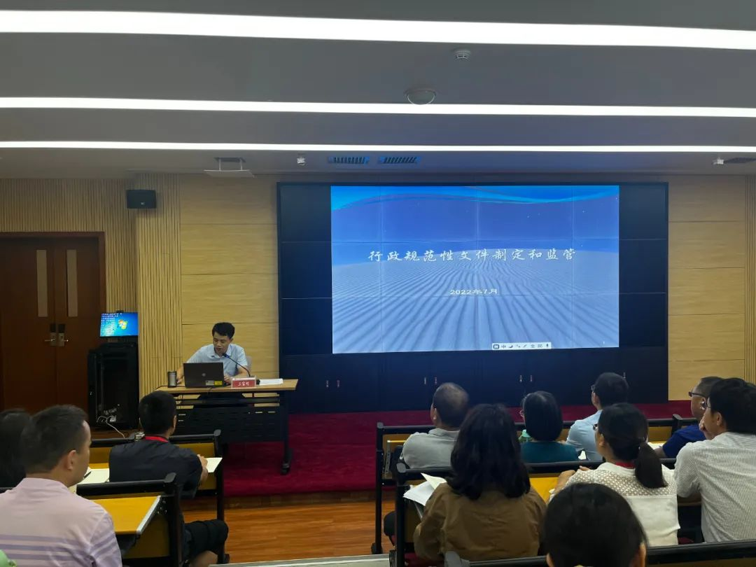 陜西省司法廳規(guī)范性文件審查備案處副處長王富剛講授《行政規(guī)范性文件制定和監(jiān)管》