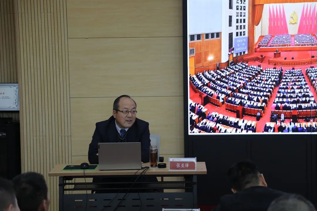 陜西渭華干部學(xué)院特聘教授、渭南市委黨校(行政學(xué)院)副教授張亞鋒講授《團(tuán)結(jié)奮斗奮力譜寫全面建設(shè)社會(huì)主義現(xiàn)代化國(guó)家新篇章--學(xué)習(xí)貫徹黨的二十大精神》