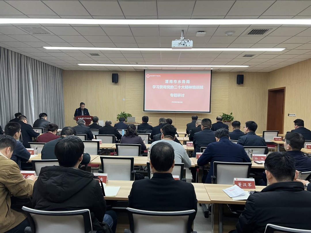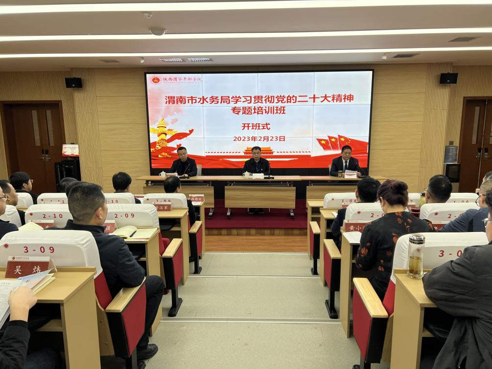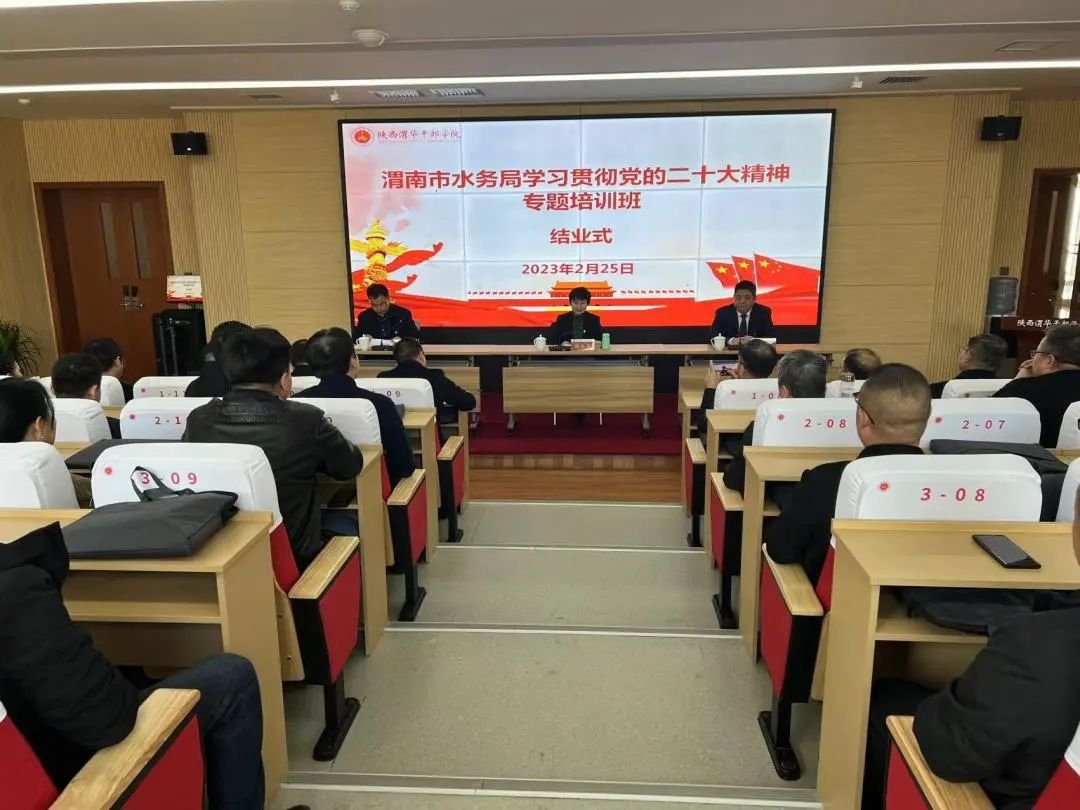 ? ? ? ?為深入學(xué)習(xí)貫徹黨的二十大精神,落實省委、市委全會及省市“兩會”精神,2月23日-25日,渭南市水務(wù)局學(xué)習(xí)貫徹黨的二十大精神專題培訓(xùn)班在陜西渭華干部學(xué)院成功舉辦。渭南市水務(wù)系統(tǒng)各縣局領(lǐng)導(dǎo)班子成員、直屬各單位主要負(fù)責(zé)同志、市直水務(wù)系統(tǒng)部分科級領(lǐng)導(dǎo)干部及優(yōu)秀年輕干部共計50人參加此次培訓(xùn)。