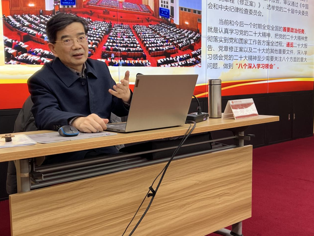陜西渭華干部學(xué)院首席教授、陜西省中共黨史學(xué)會常務(wù)副會長、西安郵電大學(xué)馬克思主義學(xué)院二級教授袁武振講授《奪取中國特色社會主義新勝利的政治宣言和行動綱領(lǐng)——深入學(xué)習(xí)領(lǐng)會黨的二十大精神》