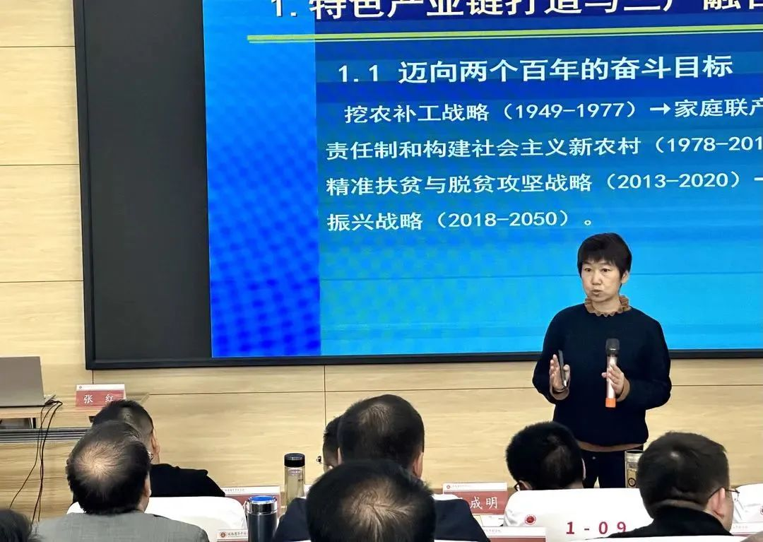 陜西渭華干部學(xué)院特聘教授、西北農(nóng)林科技大學(xué)人文社會發(fā)展學(xué)院教授,博士生導(dǎo)師張紅講授《特色農(nóng)業(yè)產(chǎn)業(yè)鏈打造與一二三產(chǎn)融合發(fā)展》