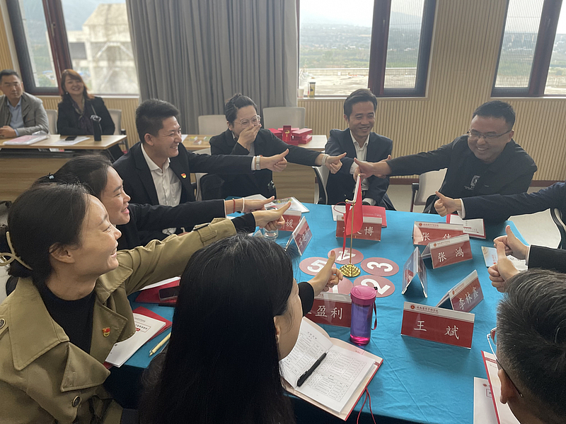 本次培訓(xùn)形式多樣、目的明確,通過沙盤推演、情景重現(xiàn)、任務(wù)模擬、競賽通關(guān)等方式,將黨史知識和黨建知識嵌入教學(xué)活動中,最終達(dá)到提升理論知識和能力水平的目的?!秿槑V?-黨史情景沙盤》課程以全情景沙盤模擬的方式,讓學(xué)員學(xué)習(xí)、感悟中國共產(chǎn)黨從1921年建黨到1949年新中國建立,這28年的崢嶸歲月與輝煌歷程;深切感知我黨從誕生到成熟、從弱小到壯大的每一個(gè)關(guān)鍵節(jié)點(diǎn)面臨的沖突和挑戰(zhàn),并在每次情景研討中享受“沖段”的樂趣?!斗榛?-黨建實(shí)戰(zhàn)沙盤》課程以團(tuán)隊(duì)共創(chuàng)的方式,直接將現(xiàn)實(shí)黨建任務(wù)帶進(jìn)課堂,通過劇情味十足的故事情節(jié),火藥味濃烈的升段競賽進(jìn)程,打破了傳統(tǒng)黨課學(xué)習(xí)模式,讓大家如同身臨其境,在實(shí)戰(zhàn)任務(wù)中增強(qiáng)黨建知識,帶入感強(qiáng),參與度高,實(shí)用性強(qiáng)。學(xué)習(xí)期間,大家積極參與,踴躍發(fā)言,討論熱烈,團(tuán)結(jié)協(xié)作,現(xiàn)場學(xué)習(xí)氛圍濃厚。