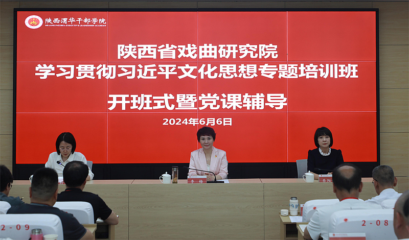 為深入學(xué)習(xí)貫徹習(xí)近平文化思想,更好擔(dān)負(fù)起新的文化使命,同時(shí)推動(dòng)黨紀(jì)學(xué)習(xí)教育各項(xiàng)工作走深走實(shí)、入腦入心,6月5日-7日,陜西省戲曲研究院學(xué)習(xí)貫徹習(xí)近平文化思想專題培訓(xùn)班在陜西渭華干部學(xué)院成功舉辦。陜西渭華干部學(xué)院黨委副書記、常務(wù)副院長,渭南市華州區(qū)委常委、組織部部長喬陽博出席開班式并致辭,陜西省戲曲研究院黨委書記、院長李梅作動(dòng)員講話。開班式由陜西省戲曲研究院黨委副書記鄭寧莉主持。