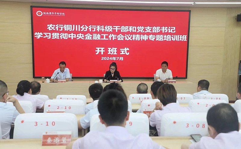 7月5日,培訓(xùn)班舉行開班式。陜西渭華干部學(xué)院黨委委員、副院長王鋒致歡迎辭。農(nóng)行銅川分行黨委書記、行長韓少軍作開班動(dòng)員講話,她就本次培訓(xùn)提出幾點(diǎn)意見:一是旗幟鮮明講政治,全面加強(qiáng)黨對金融工作的領(lǐng)導(dǎo);二是學(xué)深悟透會(huì)議精神,以服務(wù)能力提升檢驗(yàn)高質(zhì)量發(fā)展;三是堅(jiān)決守牢底線,當(dāng)好維護(hù)金融穩(wěn)定的壓艙石;四是認(rèn)真扎實(shí)學(xué)習(xí),確保完成培訓(xùn)任務(wù)。開班式由農(nóng)行銅川分行黨委組織部、人力資源部總經(jīng)理賈濤主持。