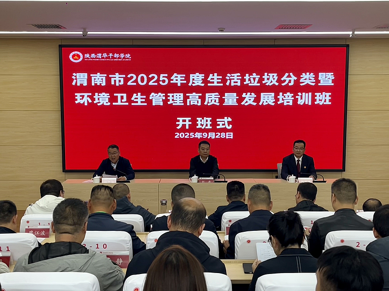 9月28日-30日,由渭南市城市管理執(zhí)法局主辦的渭南市2025年度生活垃圾分類暨環(huán)境衛(wèi)生管理高質(zhì)量發(fā)展培訓班在陜西渭華干部學院成功舉辦。陜西渭華干部學院黨委委員、副院長韓寶林致歡迎辭,渭南市城市管理執(zhí)法局黨組成員、副局長劉濤作開班動員講話,開班式由渭南市環(huán)境衛(wèi)生管理處處長孫忠海主持。